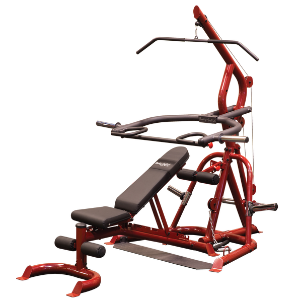 Perform shrugs, squats, dead lifts, biceps curls and everything in-between more easily and effective. With a revolutionary space-saving design the GLGS100P4 fits comfortably into most home and commercial settings. With an all-new, high-tech/high-gloss anodized red finish, this gym not only stands out for its performance but also its looks.