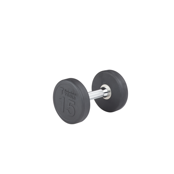 Body-Solid’s Round Rubber Dumbbells feature chrome-plating on solid steel handles with comfortable medium knurl for a secure grip. The rounded dumbbell head is coated in quality virgin rubber. Easy-to-read weight designations are embossed on each dumbbell making your search for the perfect weight effortless. Round rubber dumbbells are available in five lb. increments from 5-100 lbs.
