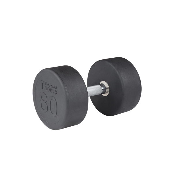 Body-Solid’s Round Rubber Dumbbells feature chrome-plating on  solid steel handles with comfortable medium knurl for a secure grip. The rounded dumbbell head is coated in quality virgin rubber.  Easy-to-read weight designations are embossed on each dumbbell making your search for the perfect weight effortless. Round rubber dumbbells are available in five lb. increments from 5-100 lbs.